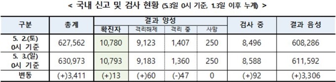 Áúº´°ü¸®º»ºÎ Á߾ӹ濪´ëÃ¥º»ºÎ(Áߴ뺻)Àº 3ÀÏ 0½Ã ±âÁØ Äڷγª19 ½Å±Ô È®ÁøÀÚ°¡ 13¸í ´Ã¾î ÃÑ 1¸¸793¸íÀ̶ó°í ¹àÇû´Ù. 13¸í Áß ÇØ¿ÜÀ¯ÀÔÀº 10¸íÀ̾ú°í, Áö¿ª¿¡¼ ¹ß»ýÀº 3¸íÀÌ´Ù.