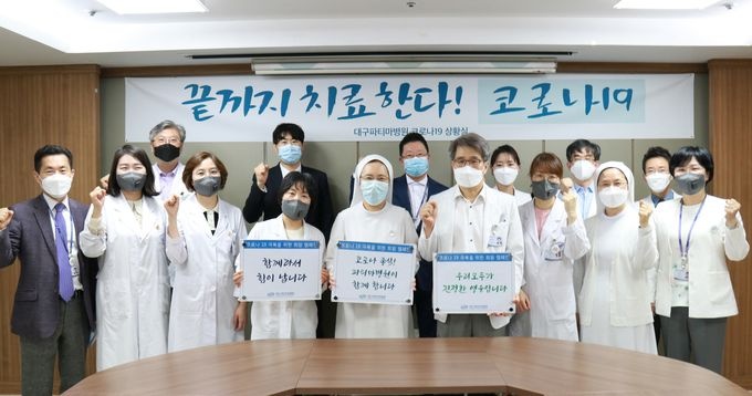 [µ¥Àϸ®¸Þµð ¹Ú´ëÁø ±âÀÚ] ´ë±¸ÆÄƼ¸¶º´¿ø(º´¿øÀå ¹ÚÁø¹Ì)ÀÌ Äڷγª19 ±Øº¹À» À§ÇØ »çÅõ¸¦ ¹úÀ̰í ÀÖ´Â ÀÇ·áÁø¿¡°Ô °¨»ç¿Í ÀÀ¿øÀÇ ¸Þ½ÃÁö¸¦ ÀüÇÏ´Â Èñ¸ÁÄ·ÆäÀο¡ µ¿ÂüÇß´Ù.