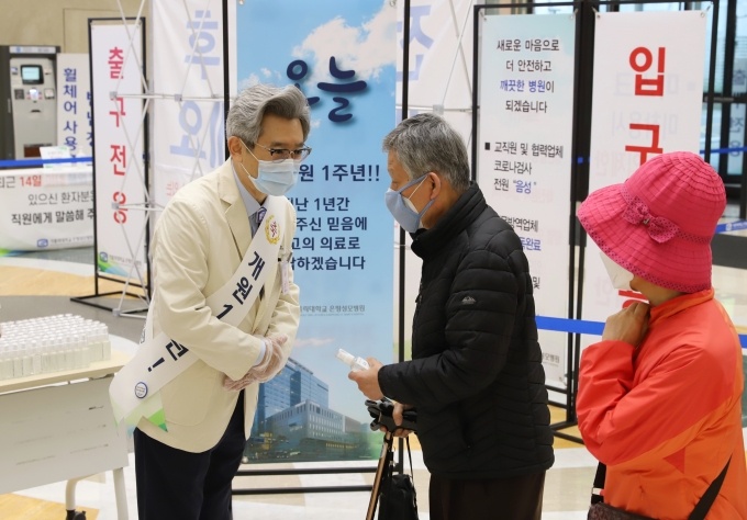 [µ¥Àϸ®¸Þµð ÇÑÇØÁø ±âÀÚ] Áö³´Þ Äڷγª19·Î ÀÎÇÑ Áø·á Áß´Ü »çŸ¦ ±Øº¹Çϰí Á¤»ó ¿î¿µÀ» ȸº¹ÇÑ ÀºÆò¼º¸ðº´¿øÀÌ °³¿ø 1ÁÖ³âÀ» ¸Â¾Ò´Ù.