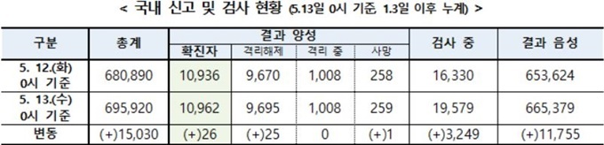 Áúº´°ü¸®º»ºÎ Á߾ӹ濪´ëÃ¥º»ºÎ(Áߴ뺻)Àº 13ÀÏ 0½Ã ±âÁØ Äڷγª19 ½Å±Ô È®ÁøÀÚ°¡ 26¸í ¹ß»ýÇß°í, ÀÌÁß Áö¿ª¹ß»ý 22°Ç·ÇØ¿ÜÀ¯ÀÔ 4°Ç µîÀ̶ó°í ¹àÇû´Ù. ÀÌÅ¿ø Ŭ·´Û¡ °¨¿°À¸·Î ÀÎÇÑ Áö¿ª¹ß»ýÀÌ Àæ¾ÆµéÁö ¾Ê´Â ¸ð¾ç»õ´Ù.