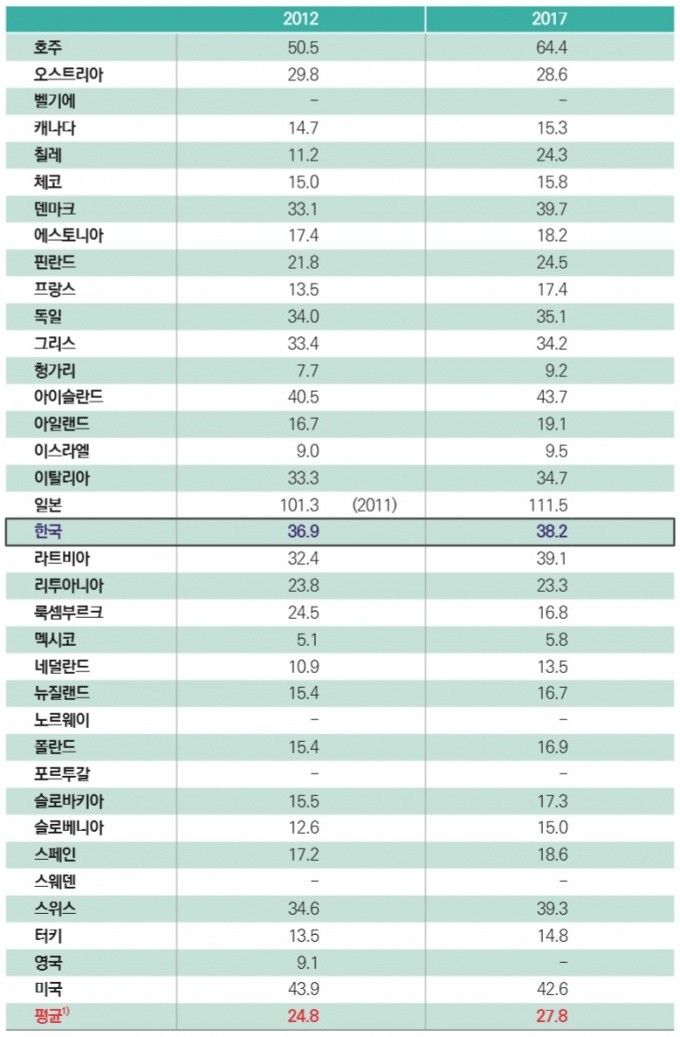 ¿ì¸®³ª¶ó º¸À¯ CT´Â 5³â°£ °è¼ÓÇØ¼ Áõ°¡ÇؿԴÙ. 2012³â 100¸¸¸í ´ç 36.9´ë¿¡¼ 2017³â 38.2´ë·Î 5³â µ¿¾È 1.3´ë ´Ã¾ú´Ù.