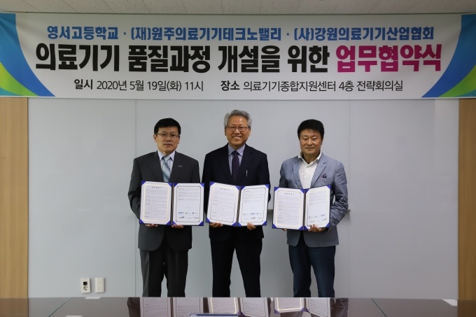 [µ¥Àϸ®¸Þµð ÇÑÇØÁø ±âÀÚ] ¿µ¼°íµîÇб³(±³Àå ÀÌÁ¤ÀÍ)¿Í (Àç)¿øÁÖÀÇ·á±â±âÅ×Å©³ë¹ë¸®(¿øÀå ¹éÁ¾¼ö), (»ç)°¿øÀÇ·á±â±â»ê¾÷Çùȸ(ȸÀå ÃÖ±æ¿î)°¡ 19ÀÏ ÀÇ·á±â±âǰÁú°ü¸®°úÁ¤ °³¼³À» À§ÇÑ ¾÷¹«Çù¾àÀ» ü°áÇß´Ù.