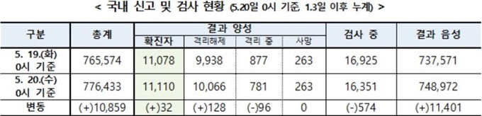 °Ý¸® ÇØÁ¦µÈ È®ÁøÀÚ´Â 128¸í ´Ã¾î ÃÑ 1¸¸ 66¸í¸íÀÌ µÆ´Ù. °Ý¸® ÁßÀÎ È®ÁøÀÚ´Â 96¸íÀÌ ÁÙ¾îµç 781¸íÀÌ´Ù.