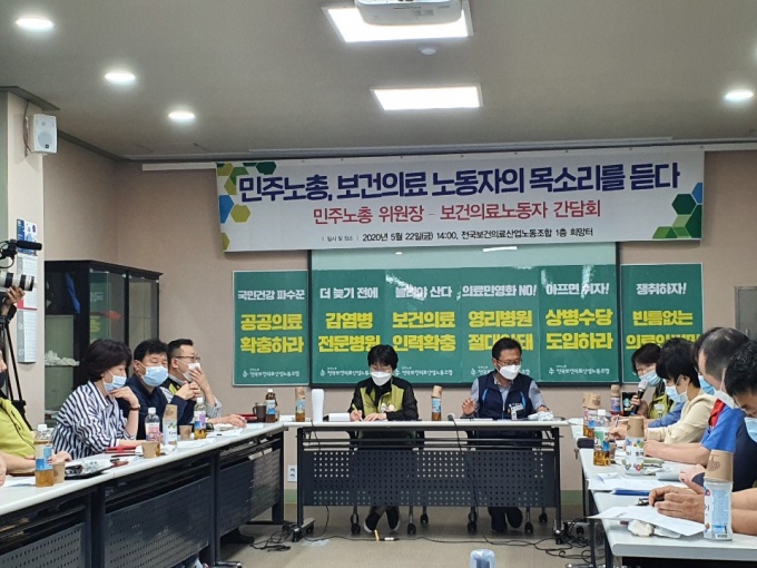 Áö³ 22ÀÏ º¸°ÇÀÇ·á³ëÁ¶ 1Ãþ Èñ¸ÁÅÍ¿¡¼´Â ¹ÎÁÖ³ëÃÑ À§¿øÀå°ú º¸°ÇÀÇ·á³ëµ¿ÀÚµéÀÇ °£´ãȸ°¡ ¿·È´Ù.