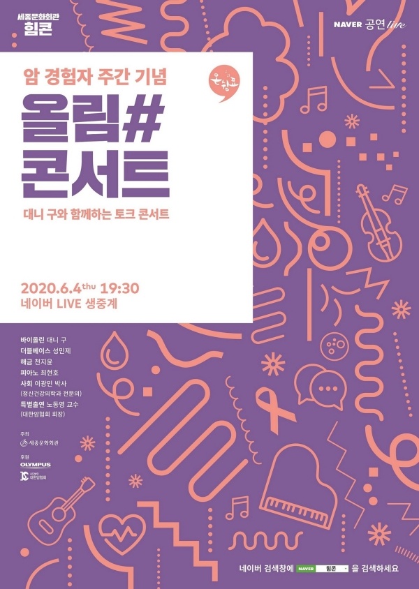 ‘¿Ã¸²#ÄܼƮ’´Â ¼¼Á¾¹®Èȸ°üÀÌ ÁÖÃÖÇÏ°í ¿Ã¸²Çª½ºÇѱ¹°ú ´ëÇѾÏÇùȸ°¡ Çù·ÂÇØ °³ÃֵǴ °ü°´ ¸ÂÃãÇü À½¾Çȸ·Î ¾Ï °æÇèÀÚ¿Í ±× °¡Á·µé°ú ¼ÒÅëÇÏ°í °ø°¨Çϱâ À§ÇØ ±âȹµÆ´Ù.