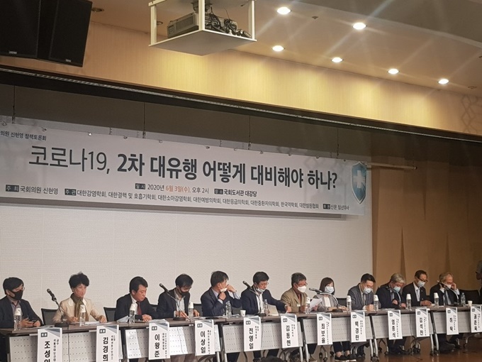 ÀÇ»ç Ãâ½Å ´õºÒ¾î¹ÎÁÖ´ç ½ÅÇö¿µ ÀÇ¿øÀÌ 3ÀÏ ±¹È¸ µµ¼°ü ´ë°´ç¿¡¼ ´ëÇѰ¨¿°ÇÐȸ¿Í °áÇÙ ¹× È£Èí±âÇÐȸ, ¼Ò¾Æ°¨¿°ÇÐȸ, ¿¹¹æÀÇÇÐȸ, ÀÀ±ÞÀÇÇÐȸ, ÁßȯÀÚÀÇÇÐȸ, Çѱ¹¿ªÇÐȸ ¹× º´¿øÇùȸ µî°ú °³ÃÖÇÑ ‘Äڷγª19, 2Â÷ ´ëÀ¯Çà ¾î¶»°Ô ´ëºñÇØ¾ß Çϳª’ Á¤Ã¥Åä·Ðȸ¿¡¼ ¾öÁᫎ °¡ÃµÀÇ´ë °¨¿°³»°ú ±³¼ö´Â ÀÌ °°Àº ÁÖÀåÀ» ÆîÃÆ´Ù.
