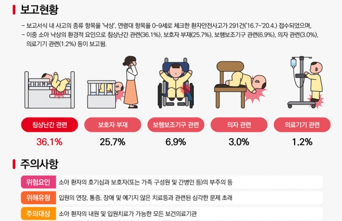 À̹ø¿¡ ¹ß·ÉµÈ ȯÀÚ¾ÈÀü ÁÖÀǰ溸´Â ¼Ò¾Æ ȯÀÚ¿¡°Ô ¹ß»ýÇÑ ³«»ó»ç°í·Î ÀÎÇØ À§ÇØ(êËúª)°¡ ¹ß»ýÇÑ ÇöȲÀÌ ¼ö·ÏµÆ´Ù. ¶Ç ÀÌ·± ȯÀÚ¾ÈÀü»ç°íÀÇ Àç¹ß ¹æÁö¸¦ À§ÇÑ ±Ç°í»çÇ× ¹× °ü·Ã ¿¹¹æ Ȱµ¿ »ç·Ê°¡ Æ÷ÇԵƴÙ.