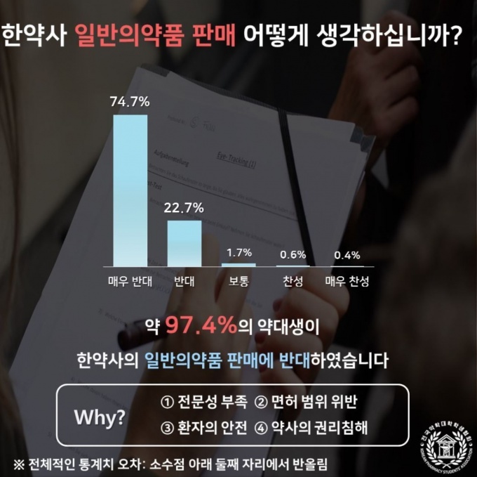 16ÀÏ Àü±¹¾àÇдëÇÐÇлýÇùȸ(ÀÌÇÏ Àü¾àÇù)¿¡ µû¸£¸é ÇѾà»çÀÇ ÀϹÝÀǾàǰ ÆÇ¸Å¿Í °ü·ÃÇØ ¾à´ë»ý 529¸íÀ» ´ë»óÀ¸·Î ¼³¹®Á¶»ç¸¦ ½Ç½ÃÇÑ °á°ú ÀÀ´äÀÚÀÇ 97.4%°¡ '¸Å¿ì ¹Ý´ëÇÑ´Ù'°í ´äÇß´Ù.