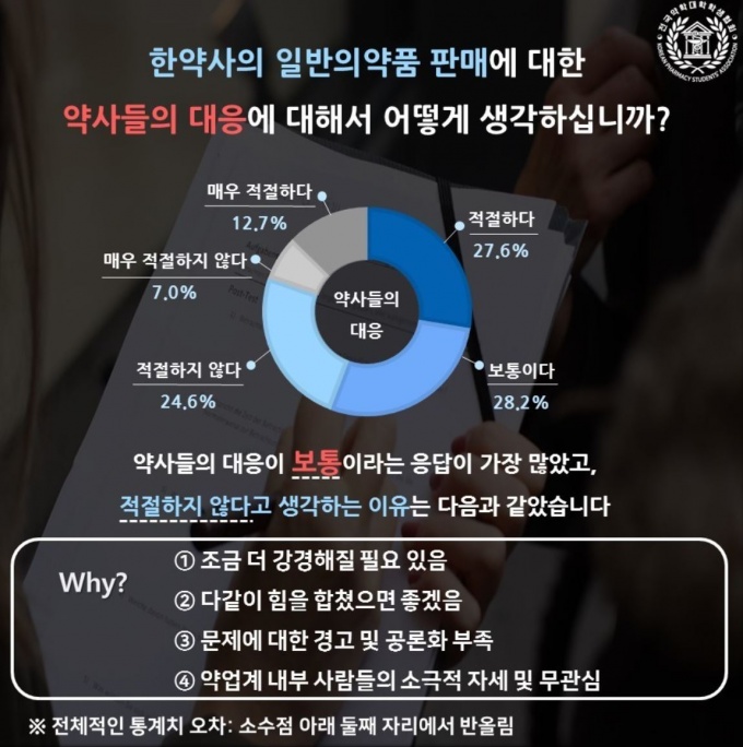 ÇöÀç ¾à»çµéÀÇ ´ëÀÀ¹æ¾È µî°ú °ü·ÃÇØ ÀÀ´äÀÚÀÇ 24.6%°¡ 'ÀûÀýÇÏÁö ¾Ê´Ù'°í ´äÇß´Ù.