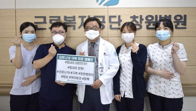 ¾È¸éȯ º´¿øÀåÀº ‘Èû³»¶ó ´ëÇѹα¹!’, ‘Èû³»¶ó â¿ø!’, ‘Äڷγª19 ±Øº¹À» À§ÇØ Ã¢¿øº´¿øÀÌ Ç×»ó ¿©·¯ºÐ°ú ÇÔ²² ÇϰڽÀ´Ï´Ù’¶ó´Â ÀÀ¿ø°ú Èñ¸ÁÀÇ ¸Þ½ÃÁö¸¦ Àü´ÞÇß´Ù.