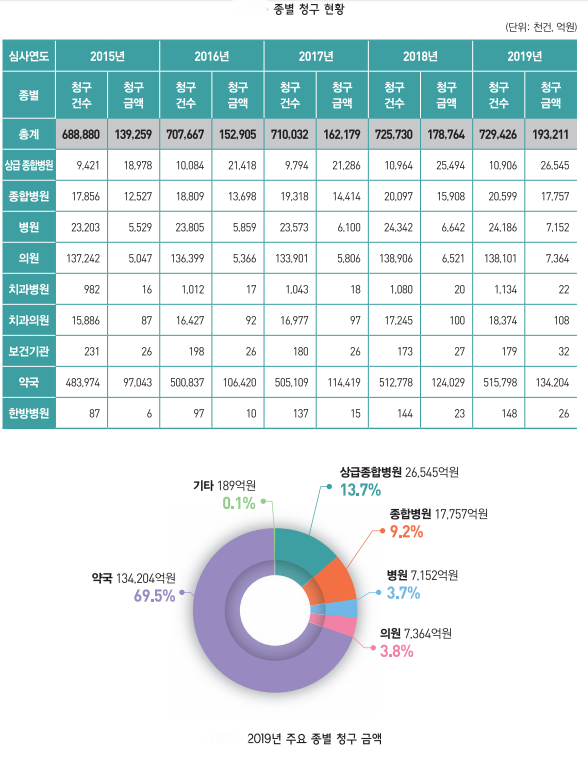 Ä¡°ú º´·ÀÇ¿ø ¹× º¸°Ç±â°üÀ» Á¦¿ÜÇÑ »ó±ÞÁ¾ÇÕº´¿ø·Á¾ÇÕº´¿ø·º´¿ø·ÀÇ¿øÀÇ Ã»±¸ °Ç¼ö´Â ¸ðµÎ ¼ÒÆø °¨¼ÒÇß°í ¾à±¹ÀÇ Ã»±¸ °Ç¼ö°¡ 5¾ï1277¸¸ °Ç¿¡¼ 5¾ï1579¸¸ °ÇÀ¸·Î ´Ã¾ú´Ù.