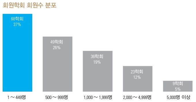 ȸ¿ø¼ö¿¡¼µµ ÇÐȸº° °ÝÂ÷´Â È®¿¬Çß´Ù. 1~499¸íÀÎ ÇÐȸ°¡ 68°÷À¸·Î, ÀüüÀÇ 37%¸¦ Â÷ÁöÇÏ¸ç °¡Àå ¸¹Àº ºñÁßÀ» º¸¿´´Ù. ÀÌ¿Í ´Þ¸® 5000¸í ÀÌ»óÀÇ È¸¿øÀ» º¸À¯ÇÑ ÇÐȸ´Â 9°÷¿¡ ´ÞÇß´Ù.