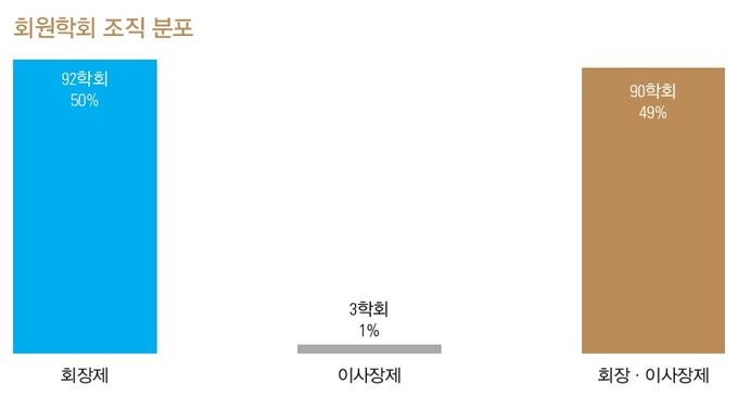 ¿î¿µÃ¼Á¦¿Í °ü·ÃÇØ¼´Â Àý¹Ý¿¡ ÇØ´çÇÏ´Â 92°³ ÇÐȸ°¡ ȸÀåÁ¦¸¦ ¿î¿µ ÁßÀ̾ú°í, 90°³ ÇÐȸ´Â ȸÀå ¹× ÀÌ»çÀåÁ¦¸¦ º´ÇàÇϰí ÀÖ´Â °ÍÀ¸·Î ÆÄ¾ÇµÆ´Ù.