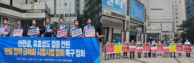 3ÀÏ ´ëÇÑÀÇ»çÇùȸ(ÀÇÇù)°ú ´ëÇÑÇѾà»çÇùȸ(ÇѾà»çȸ´Â)´Â °Ç°º¸ÇèÁ¤Ã¥½ÉÀÇÀ§¿øÈ¸ ¼ÒÀ§¿øÈ¸°¡ ¿¸° ¼¿ï ±¹Á¦ÀüÀÚ¼¾ÅÍ ¾Õ¿¡¼ ±ä±Þ Áýȸ¸¦ ¿°í ø¾à ±Þ¿©È ½Ã¹ü»ç¾÷¿¡ ´ëÇÑ ¹Ý´ë ÀÔÀåÀ» ¹àÇû´Ù.