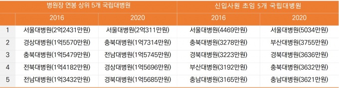 2016³â ¡ã¼¿ï´ëº´¿ø(4469¸¸¿ø) ¡ãÃæºÏ´ëº´¿ø(3278¸¸¿ø) ¡ã°æºÏ´ëº´¿ø(3223¸¸¿ø) ¡ãºÎ»ê´ëº´¿ø(3192¸¸¿ø) ¡ãÃæ³²´ëº´¿ø(3165¸¸¿ø) ¼øÀ̾ú´ø ½ÅÀÔ»ç¿ø ÃÊÀÓ »óÀ§ 5°³ º´¿øÀº 2020³â ¡ã¼¿ï´ëº´¿ø(5034¸¸¿ø) ¡ãºÎ»ê´ëº´¿ø(3755¸¸¿ø) ¡ã°æºÏ´ëº´¿ø(3636¸¸¿ø) ¡ãÃæºÏ´ëº´¿ø(3632¸¸¿ø) ¡ãÃæ³²´ëº´¿ø(3621¸¸¿ø)À¸·Î ¹Ù²î¾ú´Ù.