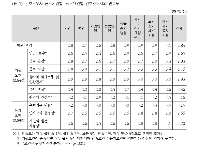 °£È£Á¶¹«»ç¸¦ ´ë»óÀ¸·Î Çö ±Ù¹«±â°ü¿¡¼ÀÇ °íÃæÀ» Á¶»çÇÑ °á°ú 1À§´Â ‘³·Àº Àӱݒ, 2À§´Â ‘³·Àº º¹Áö¼öÁØ’À¸·Î ³ªÅ¸³µ´Ù.