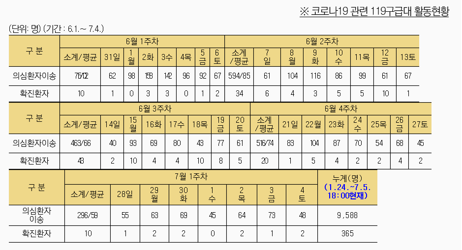 ÇÑÆí, 6¿ù µé¾î Äڷγª19 ÀǽÉȯÀÚ À̼ÛÀº ¡ã1ÁÖ Â÷ 102¸í ¡ã2ÁÖ Â÷ 85¸í ¡ã3ÁÖ Â÷ 66¸í ¡ã4ÁÖ Â÷ 74¸í ¡ã7¿ù 1ÁÖ Â÷ 59¸íÀ¸·Î °¨¼Ò Ãß¼¼¸¦ º¸¿´´Ù.