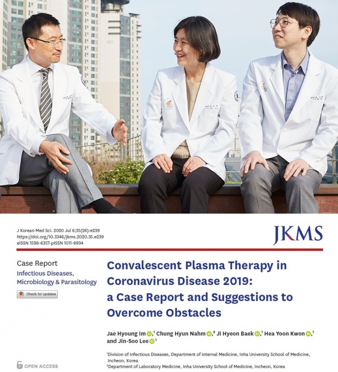 ÀÎÇϴ뺴¿øÀº °¨¿°³»°ú ÀÌÁø¼ö ±³¼öÆÀÀÌ ÃÖ±Ù ±¹Á¦ÇмúÁö JKMS(Journal of Korean Medical Science)¿¡ Ç÷ÀåÄ¡·á·Î Äڷγª-19¸¦ ¿ÏÄ¡ÇÑ »ç·Ê¸¦ ´ãÀº ³í¹®À» °ø½Ä ¹ßÇ¥Çß´Ù°í ¹àÇû´Ù.
