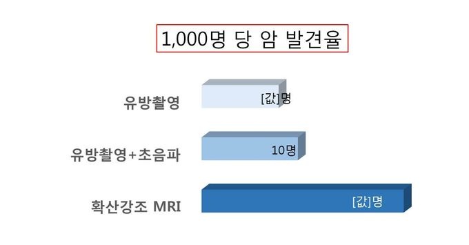 À¯¹æ¾Ï ¹ß°ßÀ²Àº ¡âÀ¯¹æÃÔ¿µ 9¸í(1000¸í ´ç 8¸í) ¡âÀ¯¹æÃÔ¿µ+À¯¹æÃÊÀ½ÆÄ 12¸í(1000¸í ´ç 10¸í) ¡âÈ®»ê°Á¶ MRI 25¸í(1000¸í ´ç 22¸í)À¸·Î È®»ê°Á¶ MRI°¡ ¿ùµîÇÏ°Ô ³ô¾Ò´Ù.