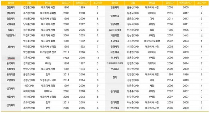 ¡â¹é½Â¿ ´ë¿øÁ¦¾à ºÎȸÀå(7³â) ¡â¹éÀÎȯ ´ë¿øÁ¦¾à Àü¹«(5³â) ¡âÀ̾籸 µ¿¼ºÁ¦¾à ´ëÇ¥ÀÌ»ç(7³â) ¡âÇã¹Ì¾Ö »ï¾ÆÁ¦¾à ´ëÇ¥ÀÌ»ç(5³â) ¡âÃÖÁöÇö »ïÁøÁ¦¾à Àü¹«(6³â) ¡âÀϼº½Å¾à À±Á¾¿í ÀÌ»ç(6³â) ¡âÁ¤À¯¼® ÀϾç¾àǰ ºÎ»çÀå(5³â) ¡â±èµ¿ÇÑ Çѵ¶ ÀÌ»ç(5³â) ¡âÀÌ»óÁØ Çö´ë¾àǰ ´ëÇ¥ÀÌ»ç(5³â) µîÀÌ´Ù.