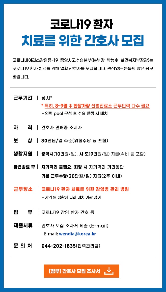 [µ¥Àϸ®¸Þµð ÀÓ¼ö¹Î ±âÀÚ] ¹æ¿ªÀηÂÀÌ ºÎÁ·ÇÑ Äڷγª19 °ü·Ã ÀÇ·á±â°ü µîÀ» Áö¿øÇϱâ À§ÇÑ ¸ðÁýÇÏ´Â °£È£»ç´Â ÀÏ(ìí) 30¸¸¿ø, °£È£Á¶¹«»ç´Â ¿ù(êÅ) 180¸¸¿øÀ» Áö±Þ¹Þ´Â °ÍÀ¸·Î ³ªÅ¸³µ´Ù.