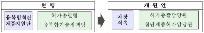 ½Ä¾àó °ü°èÀÚ´Â "ÀÇ·áÁ¦Ç°°ü·Ã º»ºÎ Á¤Ã¥°ú ¼Ò¼Ó±â°ü Çã°¡ °£ ¿¬°è °È¸¦ À§ÇØ ÀÓ½ÃÁ¶Á÷ÀÎ ‘À¶º¹ÇÕÇõ½ÅÁ¦Ç°Áö¿ø´Ü’À» ¿î¿µÇß°í, °°Àº Á¶Á÷À» Â÷Àå Á÷¼ÓÀÇ ‘Çã°¡ÃѰý´ã´ç°ü’ ¹× ‘÷´ÜÁ¦Ç°Çã°¡´ã´ç°ü’·Î Á¤±ÔÁ¶Á÷ÈÇß´Ù"°í ¼³¸íÇß´Ù.