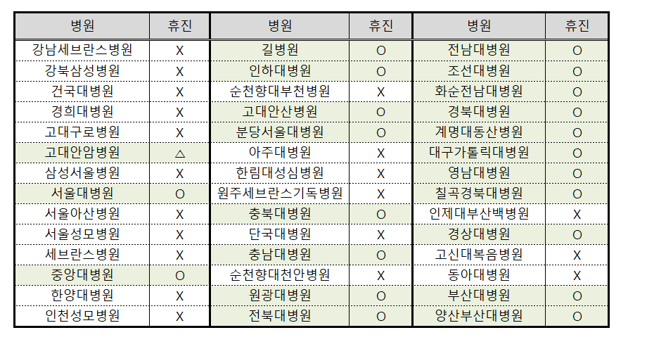 ºò5 º´¿ø(¼¿ï´ëº´¿ø, ¼¿ï¼º¸ðº´¿ø, ¼¿ï¾Æ»êº´¿ø, »ï¼º¼¿ïº´¿ø, ¼¼ºê¶õ½ºº´¿ø)Àº ±¹¸³´ëº´¿øÀÎ ¼¿ï´ëº´¿øÀ» Á¦¿ÜÇÏ°ï ¸ðµÎ Á¤»óÁø·á¸¦ ÁøÇàÇÑ´Ù.
