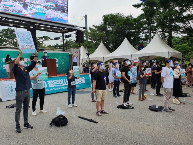 [µ¥Àϸ®¸Þµð ÀÓ¼ö¹Î, ½ÅÁöÈ£ ±âÀÚ] ´ëÇÑÀü°øÀÇÇùÀÇȸ°¡ Äڷγª19¶ó´Â Ư¼öÇÑ »óȲ¿¡µµ ºÒ±¸Çϰí 8¿ù 7ÀÏ ¿ÀÈÄ ¼¿ï ¿©ÀÇ´ë·Î¿¡¼ ‘ÀþÀºÀÇ»ç ´ÜüÇൿ’ÀÇ ÀÏȯÀ¸·Î ¾ß¿ÜÁýȸ¸¦ °³ÃÖÇß´Ù. À̹ø Çà»ç´Â ÀÇ´ëÁ¤¿ø Áõ¿ø ¹× °ø°øÀÇ´ë ¼³¸³ µî¿¡ °üÇÑ Á¤ºÎÀÇ µ¶´ÜÀûÀÎ ÀÇ·áÁ¤Ã¥¿¡ ¹Ý´ëÇÏ´Â ÀþÀº ÀÇ»çµéÀÇ ¸ñ¼Ò¸®¸¦ Á¤ºÎ¿¡ Àü´ÞÇϱâ À§ÇØ ¸¶·ÃµÆ´Ù. ´ëÀüÇùÀº ÀÇ·á°è¿Í ¼ÒÅë ¾øÀÌ ÀϹæÀûÀ¸·Î ÀÇ·á Á¤Ã¥À» °¨ÇàÇÏ´Â Á¤ºÎ¸¦ ºñÆÇÇϸç ÀÇ»ç ¼ö È®´ë ÀÌÀü¿¡ Àü°øÀÇ ±Ù¹« ȯ°æ µîÀ» °³¼±ÇØ¾ß ÇÑ´Ù°í Ã˱¸Çß´Ù. À̳¯ Çà»ç¿¡´Â ÃÖ´ëÁý ´ëÇÑÀÇ»çÇùȸ ȸÀå°ú Á¶½ÂÇö ´ëÇÑÀǰú´ëÇзÀÇÇÐÀü¹®´ëÇпøÇлýÇùȸÀå µî¿¡ Âü¼®ÇØ ÈûÀ» ½Ç¾îÁá´Ù. õÁ÷À¸·Î ¿©±â´Â Èò°¡¿îÀ» ¹þ°í °Å¸®·Î ³ª¼± ÀþÀºÀÇ»çµéÀÇ ¿ÜħÀ» ´ã¾ÆºÃ´Ù. [ÆíÁýÀÚÁÖ]