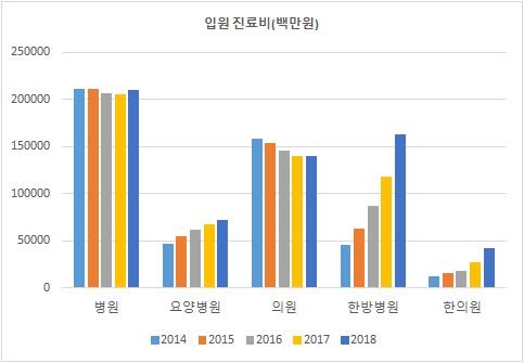 ƯÈ÷ Çѹ溴¿ø ÀÚµ¿Â÷º¸Çè ¿Ü·¡ Áø·áºñ´Â 2014³â 333¾ï¿ø¿¡¼ 2018³â 1365¾ï¿øÀ¸·Î 4.1¹è ÆøÁõ, Çѹ溴¿ø ¹× ÇÑÀÇ¿ø ÀÔ¿ø Ä¡·áºñº¸´Ù Áõ°¡ÆøÀÌ ÄÇ´Ù.