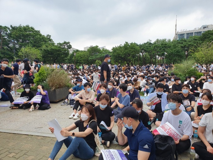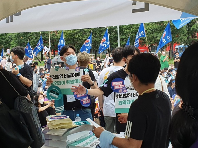 ´ëÇÑÀü°øÀÇÇùÀÇȸ °ü°èÀÚµéÀÌ Áýȸ Âü¼®Àڵ鿡°Ô ÇÇÄϰú ½ºÆ¼Ä¿¸¦ ³ª´²ÁÖ°í ÀÖ´Ù. Áö³ 7ÀÏ¿¡ ¿¸° 'ÀþÀºÀÇ»ç ´ÜüÇൿ'¿¡ À̾î À̳¯µµ ¸¹Àº Àü°øÀǵéÀÌ ¿©ÀÇ´ë·Î¿¡ ¸ð¿´´Ù.
