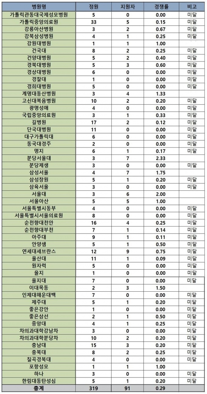 ´ëÇüº´¿øµéµµ ÀüüÀûÀÎ °æÀï·üÀÌ ³ôÁö ¾ÊÀº °¡¿îµ¥, »ï¼º¼¿ïº´¿ø ³»°ú´Â 3¸íÀ» ¸ðÁýÇϴµ¥ 6¸íÀÌ ¸ô·Á 2:1ÀÇ °æÀï·üÀ» º¸¿´´Ù. ¼¿ï¾Æ»êº´¿ø ¶ÇÇÑ 2¸í ¸ðÁý¿¡ Áö¿øÀÚ¸¦ ²Ë ä¿ü´Ù.