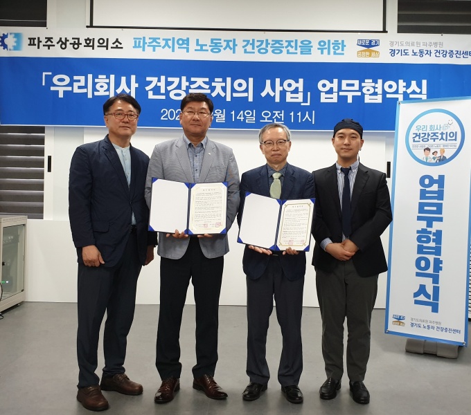 [µ¥Àϸ®¸Þµð ÀÓ¼ö¹Î ±âÀÚ] °æ±âµµÀÇ·á¿ø ÆÄÁÖº´¿ø(º´¿øÀå Ãß¿ø¿À)ÀÌ ÆÄÁÖÁö¿ª ³ëµ¿ÀÚ °Ç°ÁõÁøÀ» À§ÇØ ÆÄÁÖ»ó°øÈ¸ÀǼÒ(ȸÀå ¹ÚÁ¾Âù)¿Í ¾÷¹«Çù¾àÀ» ü°áÇß´Ù.