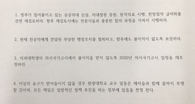 ¿ø±¤´ë Àǰú´ëÇÐ ±³¼öµéÀÌ 31ÀÏ ¼º¸í¼¸¦ ³»°í ¿ä±¸ÇÑ 4°¡Áö »çÇ×