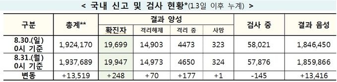 Á߾ӹ濪´ëÃ¥º»ºÎ´Â 31ÀÏ 0½Ã ±âÁØÀ¸·Î ±¹³» Äڷγª19 ½Å±Ô È®ÁøÀÚ°¡ 248¸í ´Ã¾î ´©Àû 1¸¸9947¸íÀ̶ó°í ¹àÇû´Ù.