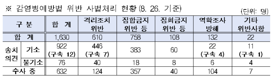 [µ¥Àϸ®¸Þµð ÀÓ¼ö¹Î ±âÀÚ] Äڷγª19 ¹ß»ý ÀÌÈÄ ÇöÀç±îÁö °Ý¸®Á¶Ä¡ À§¹ÝÀ̳ª ¿ªÇÐÁ¶»ç ¹æÇØ µî °¨¿°º´¿¹¹æ¹ý À§¹ÝÀ¸·Î 1630¸íÀÌ »ç¹ý󸮸¦ ¹Þ°Å³ª ¼ö»ç ÁßÀÎ °ÍÀ¸·Î ³ªÅ¸³µ´Ù.
