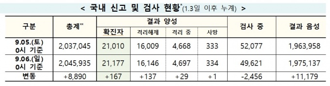 Áúº´°ü¸®º»ºÎ Á߾ӹ濪´ëÃ¥º»ºÎ´Â 6ÀÏ 0½Ã ±âÁØ ±¹³» Äڷγª19 ½Å±Ô È®ÁøÀÚ°¡ 167¸í ´Ã¾î 2¸¸1177¸íÀ¸·Î Áý°èµÆ´Ù°í ¹àÇû´Ù.