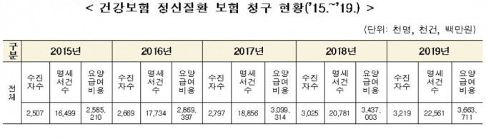 ±× »çÀÌ Á¤½ÅÁúȯÀ» È£¼ÒÇÏ´Â ±¹¹ÎµéÀº ²ÙÁØÈ÷ Áõ°¡Çϰí ÀÖ´Ù. °º´¿ø ÀÇ¿øÀÌ °Ç°º¸Çè½É»çÆò°¡¿ø¿¡¼ Á¦Ãâ¹ÞÀº ÀÚ·á¿¡ µû¸£¸é Á¤½ÅÁúȯÀ¸·Î Áø·á¹ÞÀº ±¹¹ÎÀº 5³â°£ 100¸¸¸í°¡·® Áõ°¡Çß´Ù.