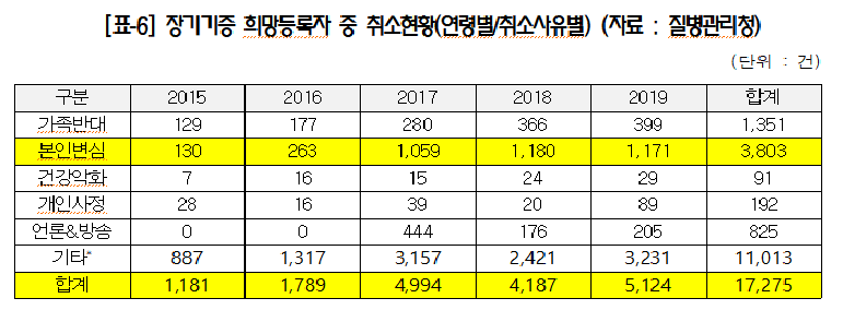 ÃÖ±Ù 5³â°£ Àå±â±âÁõ Èñ¸Áµî·ÏÀÚ Áß Ãë¼ÒÇöȲ