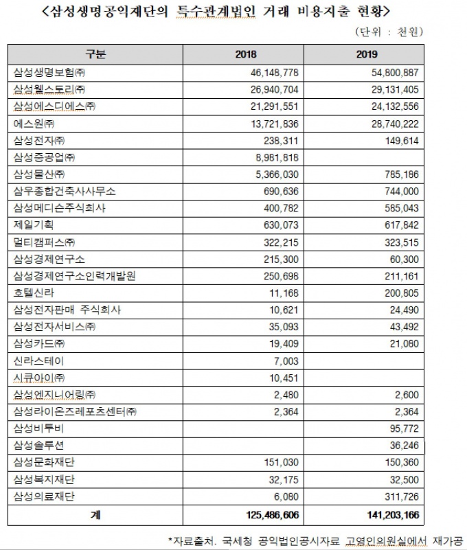 »ï¼º»ý¸í°øÀÍÀç´ÜÀº Áö³ÇØ »ï¼º»ý¸íº¸Çè¿¡ 548¾ï, ½ÄÀ½ ºê·£µåÀÎ »ï¼ºÀ£½ºÅ丮¿¡ 291¾ï, ¿¡½º¿ø¿¡ 287¾ï, »ï¼ºSDS¿¡ 241¾ï µî »ï¼º°è¿»ç¿¡ ÃÑ 1412¾ï ±Ô¸ðÀÇ Àϰ¨À» ¸Ã°å´Ù.