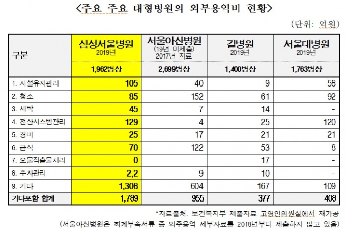 ´ëÇüº´¿øÀÇ ¿ÜºÎ¿ë¿ªºñ´Â ÁַΠȯÀÚ¿Í Á÷¿øµéÀ» À§ÇÑ °Ç¹° û¼Ò, ½Ã¼³°ü¸®, °æºñ, ±Þ½Ä, ¼¼Å¹, Àü»ê½Ã½ºÅÛ°ü¸® µîÀÇ ¿ë¿ª¿¡ »ç¿ëµÈ´Ù.