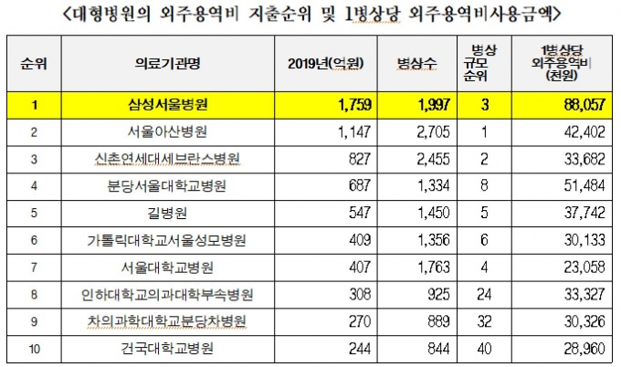 [µ¥Àϸ®¸Þµð ¹ÚÁ¤¿¬ ±âÀÚ] »ï¼º¼¿ïº´¿øÀÇ ¿ÜÁֿ뿪ºñ »ç¿ëÀÌ ºñ½ÁÇÑ ±Ô¸ðÀÇ »ó±ÞÁ¾ÇÕº´¿ø¿¡ ºñÇØ °ú´ÙÇÏ´Ù´Â ÁöÀûÀÌ ³ª¿Ô´Ù.