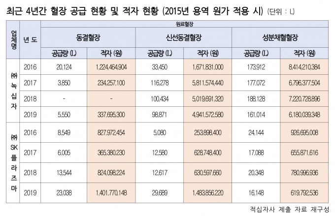 ±ÇÄ¥½Â ÀÇ¿øÃøÀº “ÇÏÁö¸¸ Àû½ÊÀÚ»ç´Â Ç¥ÁØ¿ø°¡¸¦ ¹Ý¿µÇÏÁö ¾Ê°í 2016³âºÎÅÍ 2019³â±îÁö µ¿°áÇ÷Àå, ½Å¼±µ¿°áÇ÷Àå, ¼ººÐäÇ÷Ç÷ÀåÀ» °¢°¢ ¿ø°¡ÀÇ 65%, 70%, 71% ¼öÁØÀÇ ´Ü°¡·Î ³ì½ÊÀÚ¿Í SKÇöóÁ¿¡ °ø±ÞÇß´Ù”¸ç “4³â °£ ³ì½ÊÀÚ¸¦ »ó´ë·Î ¾à 488¾ï¿ø, SKÇöóÁ¸¦ »ó´ë·Î ¾à 94¾ï¿øÀÇ ÀûÀÚ¸¦ ³» ÃÑ 580¾ï¿ø °¡·®ÀÇ ÀûÀÚ¸¦ ±â·ÏÇß´Ù”°í ¹àÇû´Ù.