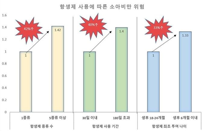 ¿ì¼±, Åõ¿©ÇÑ Ç×»ýÁ¦ Á¾·ù°¡ ¸¹À»¼ö·Ï ¼Ò¾Æºñ¸¸ À§ÇèÀÌ ³ô¾Ò´Ù. Ç×»ýÁ¦¸¦ 5°¡Áö °è¿ ÀÌ»ó »ç¿ëÇÑ °æ¿ì, 1°¡Áö¸¸ Åõ¿©ÇßÀ» ¶§º¸´Ù ºñ¸¸ °¡´É¼ºÀÌ ¾à 42% Áõ°¡Çß´Ù.