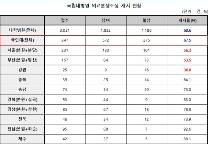 [µ¥Àϸ®¸Þµð °íÀç¿ì ±âÀÚ] ¼¿ï´ëº´¿ø°ú ºÎ»ê´ëº´¿øÀÌ ÀÇ·áºÐÀïÁ¶Á¤ ½Åû Á¢¼ö¸¦ °¡Àå ¸¹ÀÌ ¹ÞÀº ±¹¸³´ëº´¿øÀ¸·Î ²ÅÇûÀ¸³ª, Âü¿©À²Àº Àý¹ÝÀ» Á¶±Ý ³ÑÀº °ÍÀ¸·Î ³ªÅ¸³µ´Ù. ¾ç º´¿øÀº 10°³ ±¹¸³´ëº´¿ø Áß °¡Àå ¸¹Àº ÀÇ·á¼Ò¼ÛÀ» °Þ°í ÀÖ¾ú´Ù.