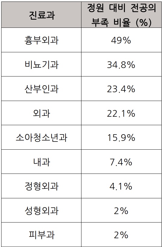 ÇÑÆí, ±¹¸³´ëº´¿øµéÀÇ Áø·á°ú¸¦ »ìÆìº¸¸é Àü°øÀÇ Á¤¿øÀÌ 311¸íÀ¸·Î °¡Àå ¸¹Àº ³»°ú°¡ 23¸í(7.4%)ÀÌ ºÎÁ·Çß´Ù. ÀÌ¾î µÎ ¹øÂ°·Î Á¤¿øÀÌ ¸¹Àº ¼Ò¾ÆÃ»¼Ò³â°úÀÇ °æ¿ì Àü°øÀÇ ºÎÁ· ºñÀ²ÀÌ 15.9%¿´´Ù.