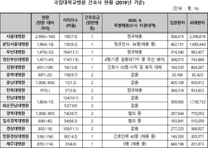 ±¹¸³´ëº´¿ø °£È£»ç ÀÌÁ÷ »ç·Êµµ »ó´çÈ÷ ¸¹¾Ò´Ù. Áö³ÇØ ºÎ»ê´ëº´¿ø(194¸í), ¾ç»êºÎ»ê´ëº´¿ø(174¸í), ÃæºÏ´ëº´¿ø(158¸í), Àü³²´ëº´¿ø(124¸í), °æ»ó´ëº´¿ø(108¸í) µî¿¡¼ °£È£»ç°¡ ÀÌÁ÷Çß´Ù. Ä¥°î°æºÏ´ëº´¿ø¿¡¼´Â ä¿ëÇÑ °£È£»ç 79¸í Áß 54¸íÀÌ »çÁ÷Çß´Ù.