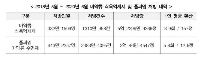 ½Ä¾àó Á¦Ãâ ÀÚ·á¿¡ µû¸£¸é 2018³â 5¿ùºÎÅÍ ¿ÃÇØ »ó¹Ý±â±îÁö ¸¶¾à·ù ÀǾàǰÀÎ ½Ä¿å¾ïÁ¦Á¦(ÆæÅ͹Î, Ææµð¸ÞÆ®¶óÁø, µð¿¡Æ¿ÇÁ·ÎÇÇ¿Â, ·ÎÄ«¼¼¸°, ¸¶Áøµ¹ ¼ººÐ Á¦Á¦)¿Í Á¹Çǵ© ¼ººÐÀÇ ¼ö¸éÁ¦´Â °¢°¢ 332¸¸¸í ´ë»ó ¾à 5¾ï2300¸¸Á¤, 443¸¸¸í ´ë»ó ¾à 3¾ï46¸¸Á¤ÀÌ Ã³¹æµÈ °ÍÀ¸·Î ³ªÅ¸³µ´Ù.