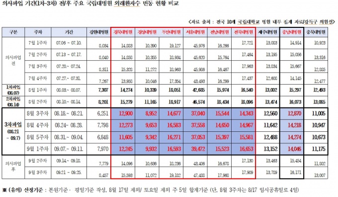 22ÀÏ ±¹È¸ ±³À°À§¿øÈ¸ ¼Ò¼Ó °µæ±¸ ÀÇ¿ø(´õºÒ¾î¹ÎÁÖ´ç)ÀÌ Àü±¹ 10°³ ±¹¸³´ëº´¿øÀ¸·ÎºÎÅÍ Á¦Ãâ¹ÞÀº ‘ÀÇ»çÆÄ¾÷ ±â°£(1Â÷-3Â÷) Àü/ÈÄ ¿Ü·¡È¯ÀÚ ¼ö º¯µ¿ÇöȲ’ ÀڷḦ ºÐ¼®ÇÑ °á°ú, ¼¿ï´ëº´¿øÀ» ºñ·ÔÇØ °æºÏ´ëº´¿ø, ºÎ»ê´ëº´¿ø, Àü³²´ëº´¿ø µî ´ëµµ½Ã±Ç ´ëÇü ±¹¸³´ëº´¿ø¿¡¼ ÀÇ»çÆÄ¾÷ ±â°£ µ¿¾È ¿Ü·¡È¯ÀÚµéÀÇ ¼ö°¡ Å©°Ô ÁÙ¾îµç °ÍÀ¸·Î ³ªÅ¸³µ´Ù.