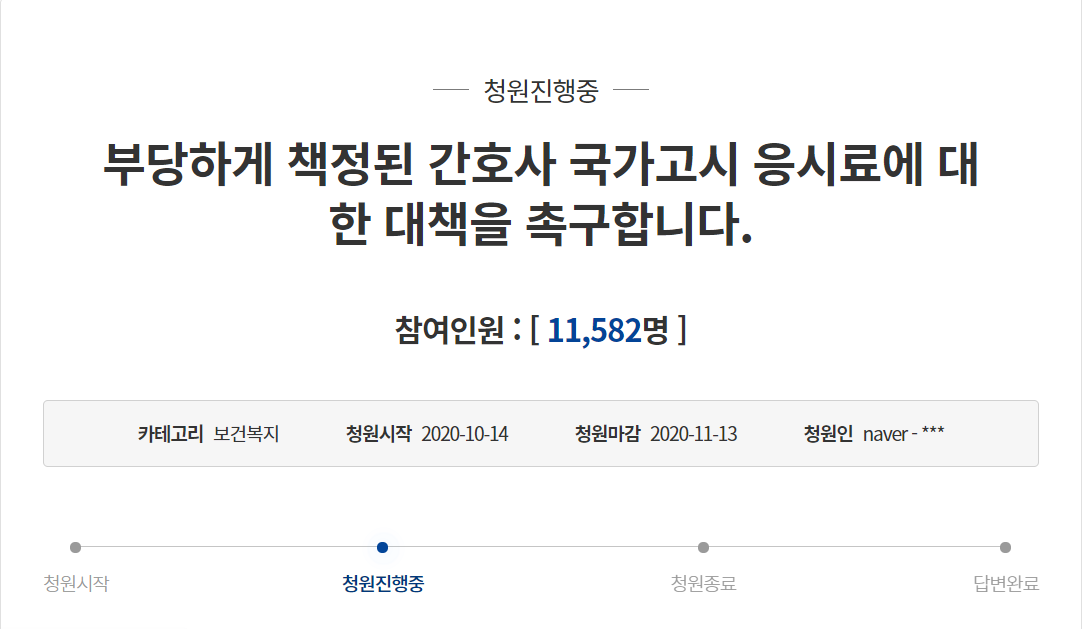 ÀÌ¿¡ °£´ëÇùÀº Áö³ 14ÀÏ ‘ºÎ´çÇÏ°Ô Ã¥Á¤µÈ °£È£»ç ±¹°¡°í½Ã ÀÀ½Ã·á¿¡ ´ëÇÑ ´ëÃ¥À» Ã˱¸ÇÕ´Ï´Ù’¶ó´Â Á¦¸ñÀÇ ±¹¹Îû¿øÀ» °Ô½Ã, 27ÀÏ ±âÁØ Âü¿©ÀÚ°¡ 1¸¸1600¿© ¸í¿¡ ´ÞÇÑ´Ù.
