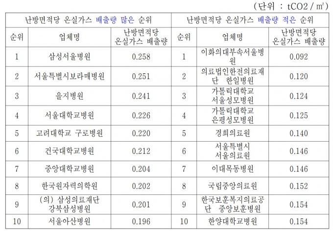 ´Ü, º´¿øÀÇ ³¹æ±âÁØ 1§³´ç ¿Â½Ç°¡½º ¹èÃâ·®ÀÌ °¡Àå ¸¹Àº º´¿øÀº ¡ã»ï¼º¼¿ïº´¿øÀ̾ú´Ù.